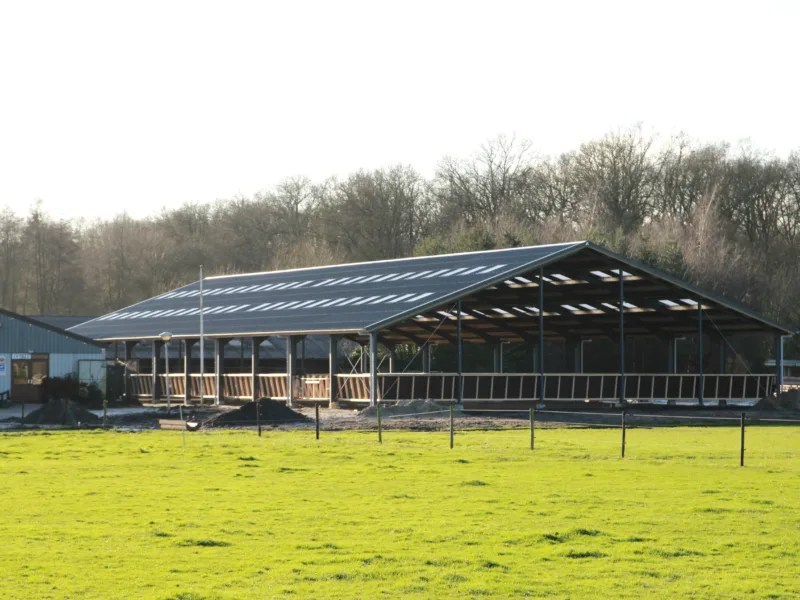 In Appelscha hebben we een open, royale rijhal geplaatst die perfect aansluit bij de bestaande manege.