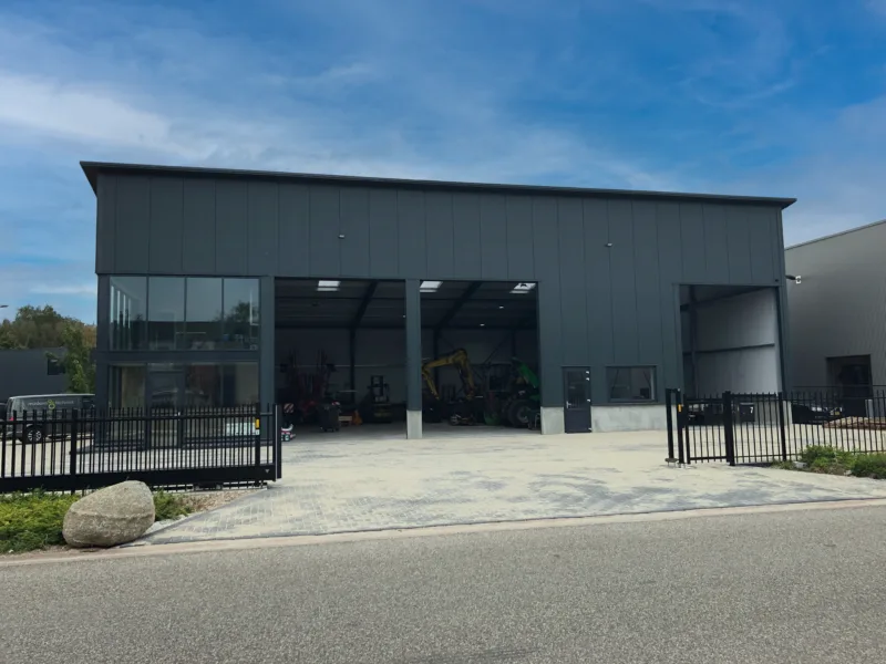 Voor dit project in Groesbeek hebben we een strakke bedrijfshal gerealiseerd met een modern lessenaarsdak en een nette, moderne afwerking.