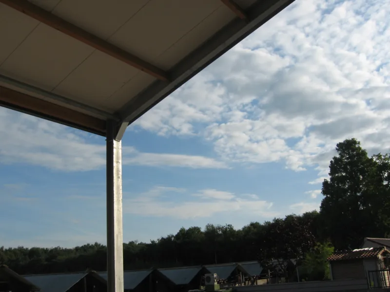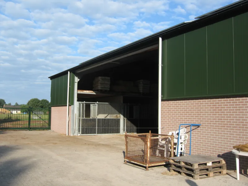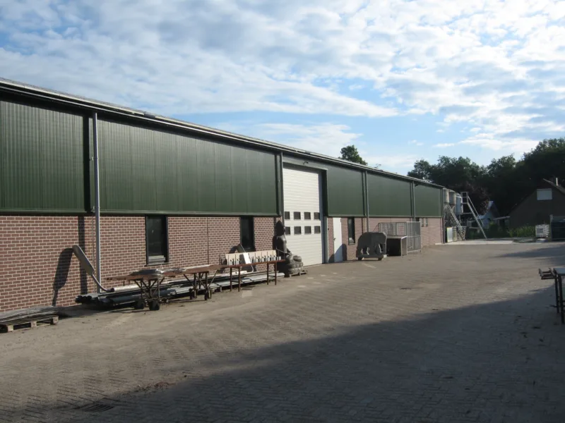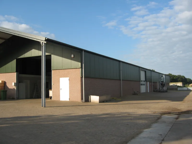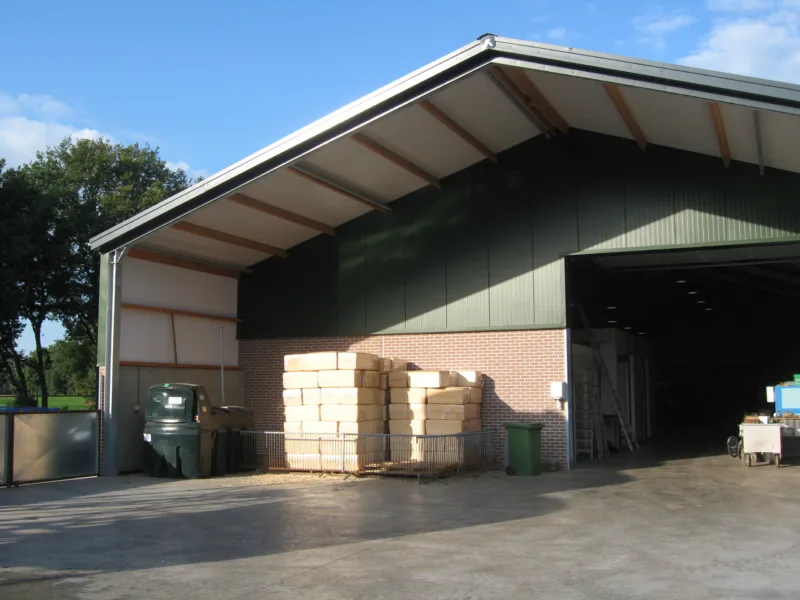 Een moderne opslagloods met overkapping, gebouwd voor een tuinbouwbedrijf in Neerkant.