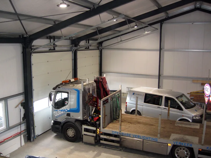 Samen hebben wij een prachtige loods ontworpen, die als functie heeft, stalling van machines, voortuigen en opslag van materialen met een inpandig kantoor.