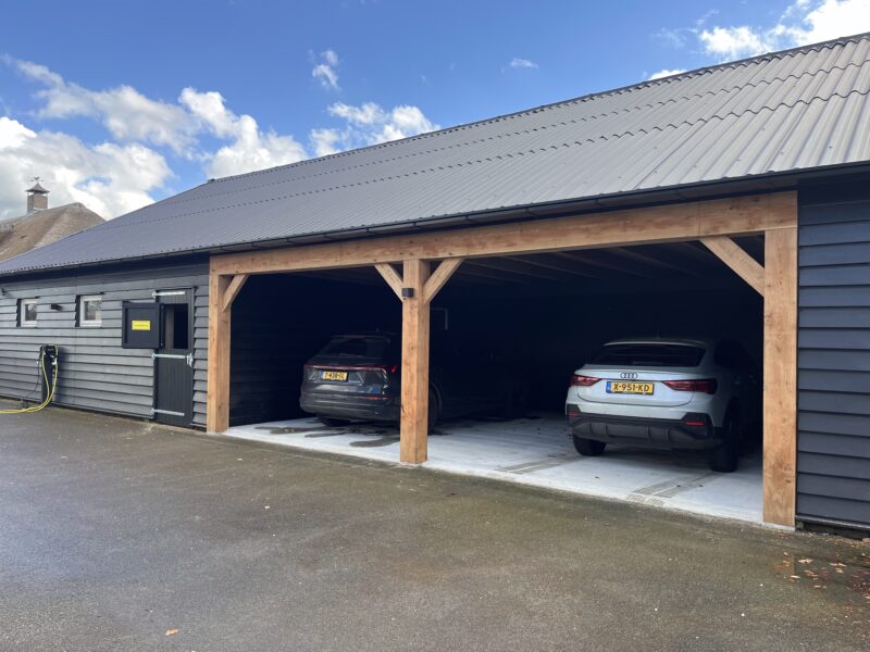 Onlangs hebben wij de onderstaande schuur mogen renoveren in Den Ham. De werkzaamheden omvatten het bekleden van 3 gevels met potdekselprofielplaten en het maken van een carport in 3 voormalige paardenboxen.