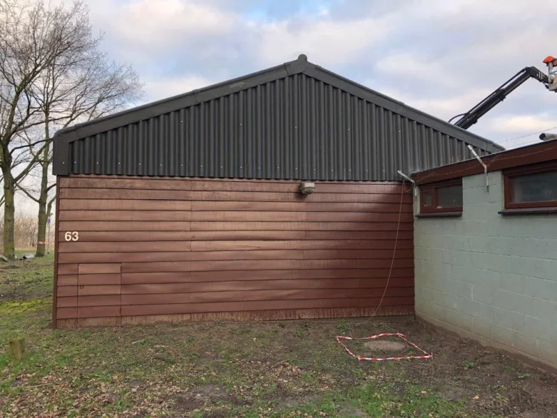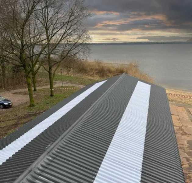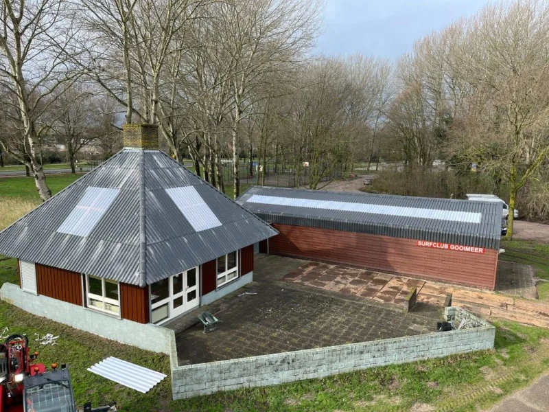 Bij dit renovatieproject in Huizen hebben we de oude dakplaten vervangen door nieuwe lichtdoorlatende golfplaten. Deze aanpassing zorgt voor meer natuurlijk daglicht in het gebouw en draagt bij aan een prettigere werkomgeving, terwijl het dak weer klaar is voor de toekomst.
