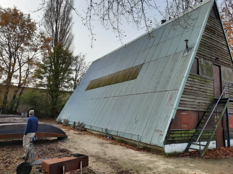 In Huizen is een compleet dak vernieuwd. Het bestaande stalen golfprofiel werd verwijderd en vervangen door geïsoleerde dakpanelen, afgewerkt met nokken en windveren. Daarnaast zijn tien Velux dakramen geplaatst, waardoor het gebouw nu een frisse uitstraling en een veel betere isolatiewaarde heeft.