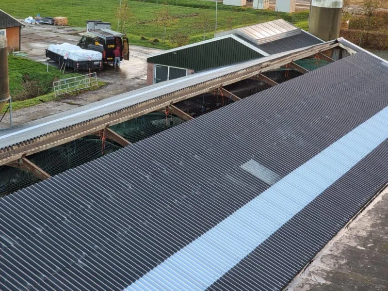 In Scharmer hebben we een dakrenovatie uitgevoerd, waarbij asbest werd verwijderd en de oude golfplaten werden vervangen. Deze vernieuwing draagt bij aan een veilige en duurzame dakbedekking, met verbeterde bescherming en kwaliteit.
